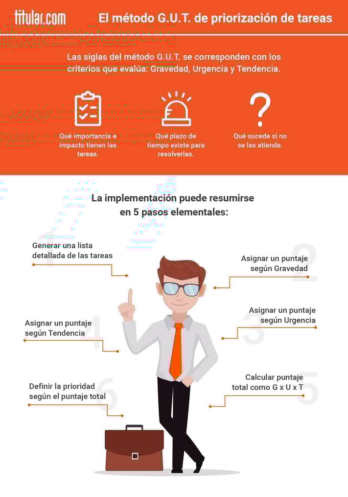 Pocas herramientas de este tipo pueden explicarse tan fácilmente y ser aplicadas de forma inmediata como el método G.U.T. Con 3 letras, 5 números y una simple operación matemática es posible organizar tus actividades de manera rápida y efectiva.