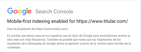 - En Google Search Console esté introducida y verificada la versión móvil de nuestra web.